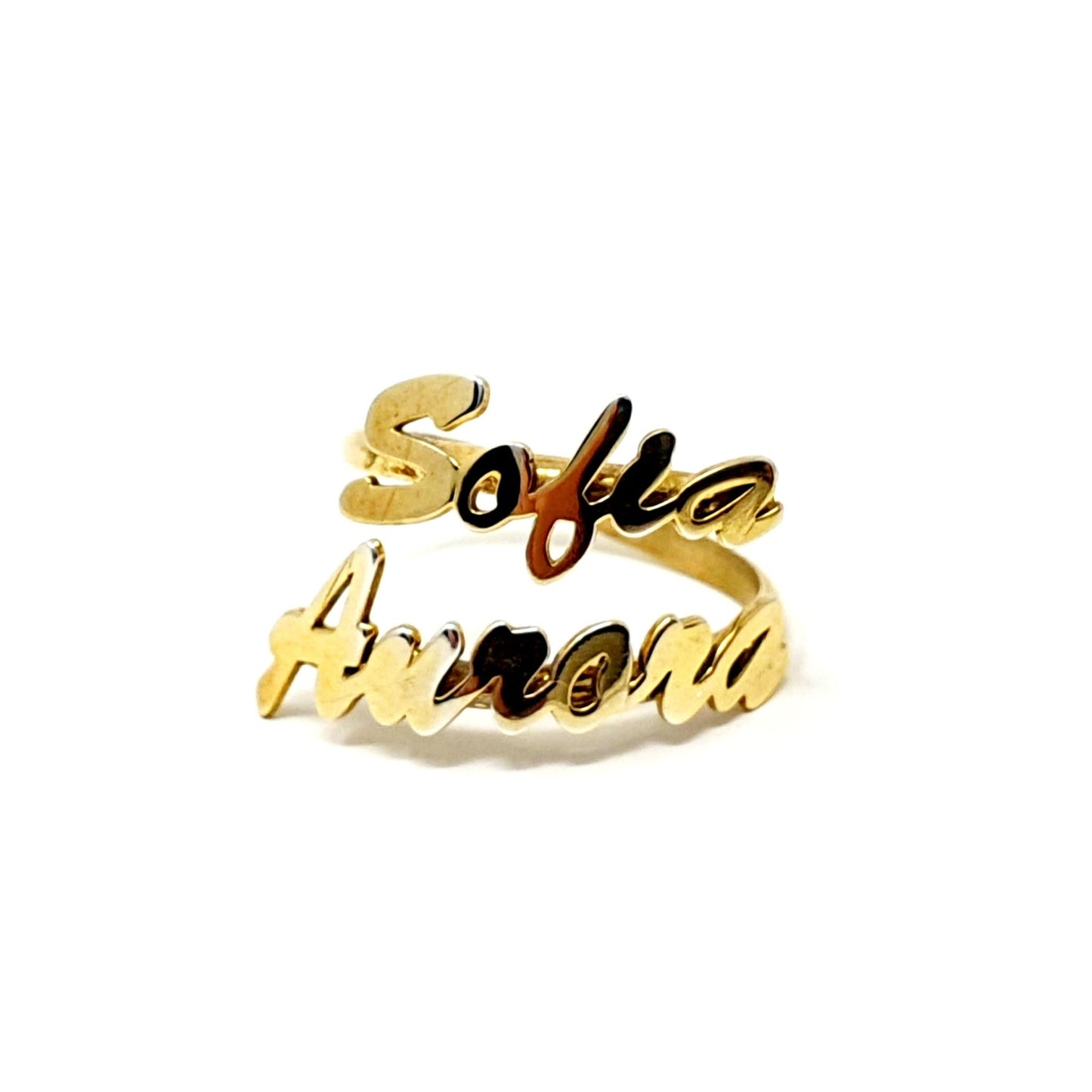 ARGENTO 925/ORO 18 Kt - Anello Contrarier Personalizzato con Doppio Nome