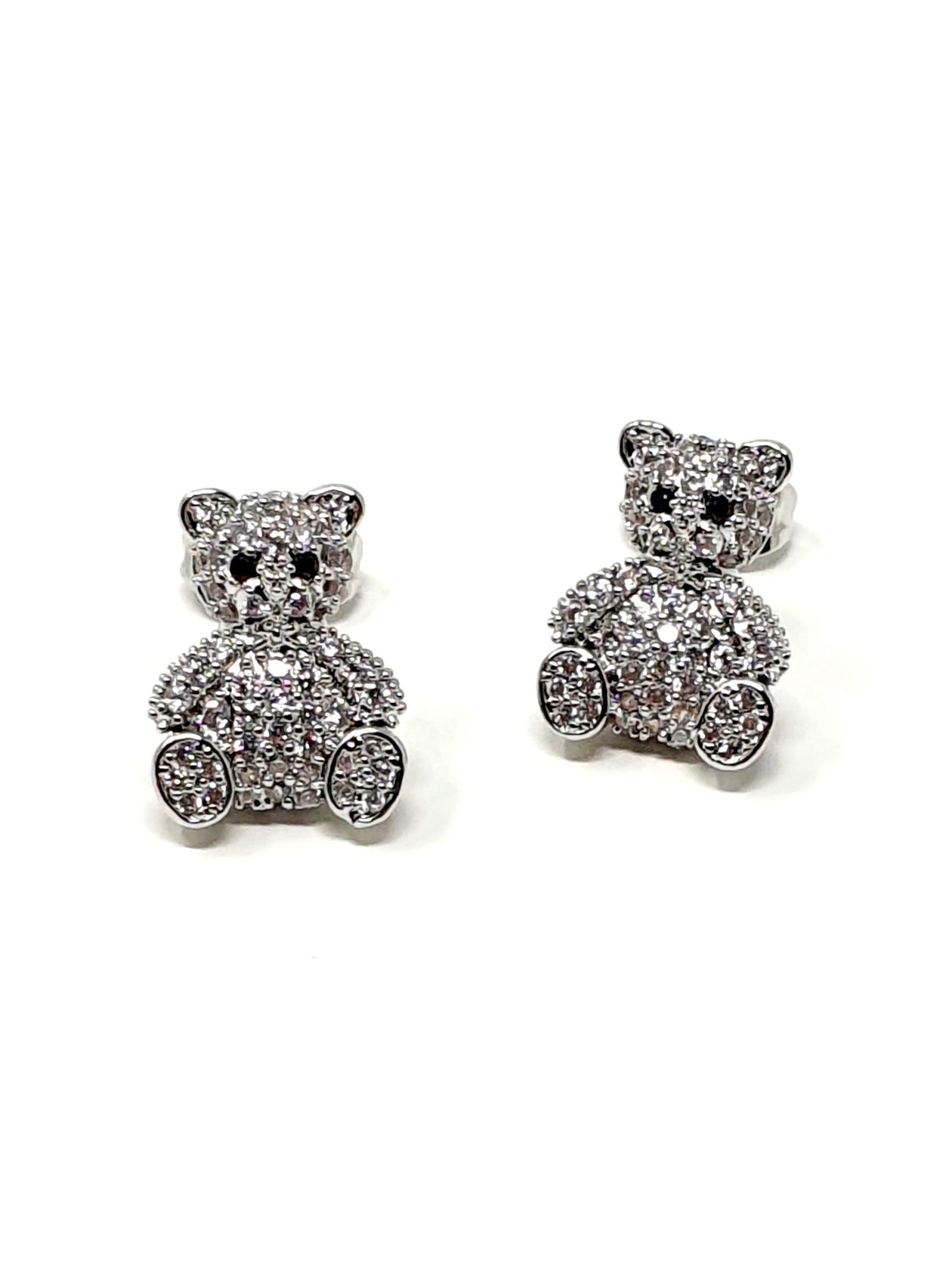 Coppia di lobetti in acciaio inossidabile finitura silver con zirconi incastonati.