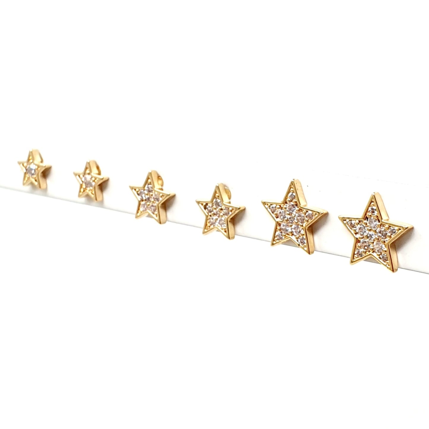 Set di 6 lobetti in ottone galvanizzato finitura gold o silver con zirconi incastonati. Il set é composto da tre coppie di orecchini di tre dimensioni diverse, due orecchini per ogni grandezza.