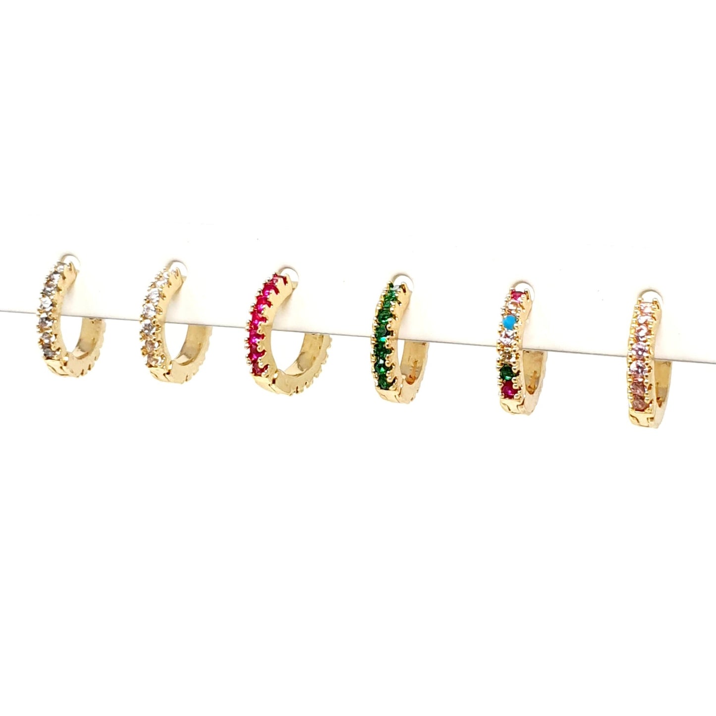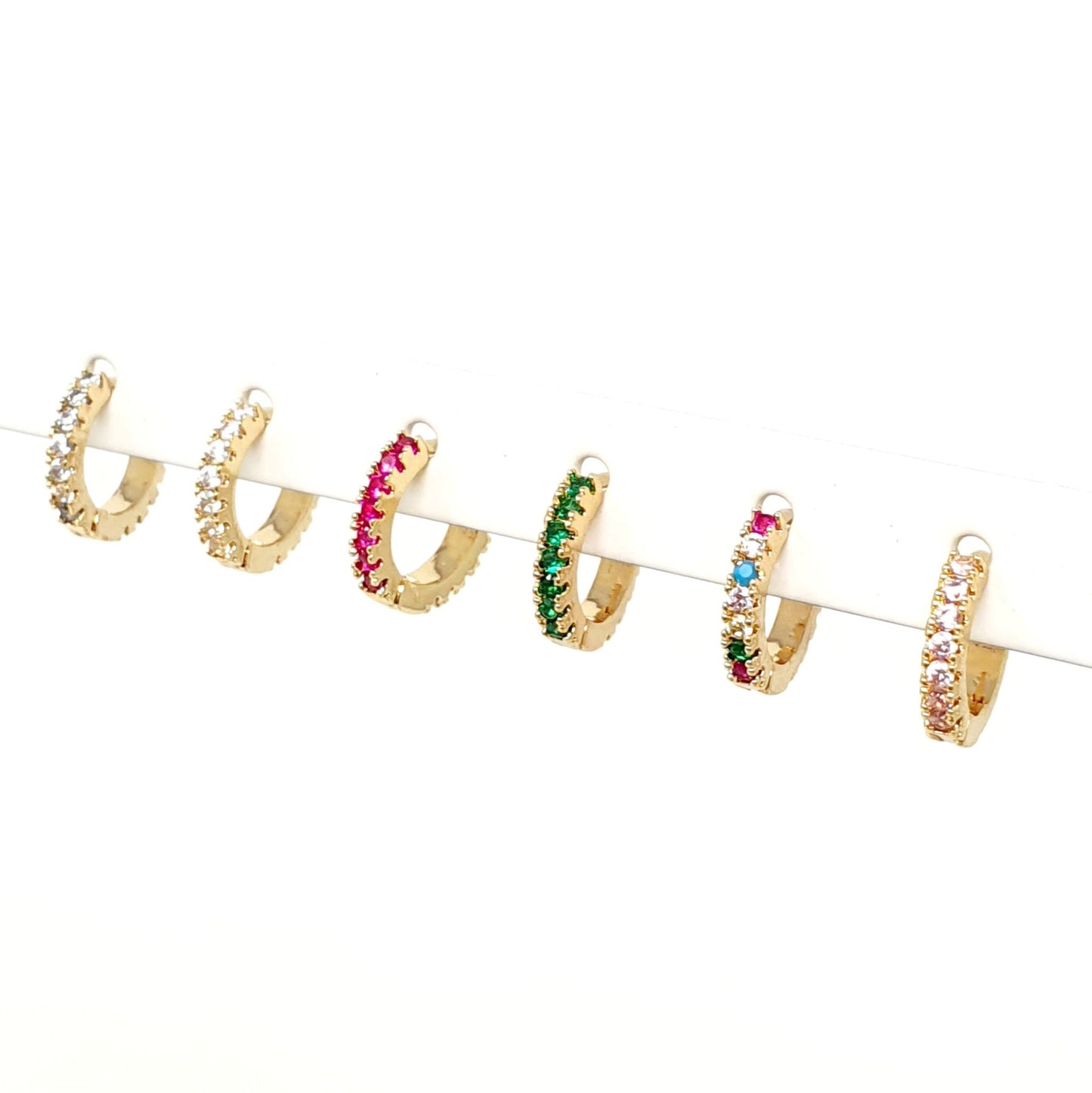 Set composto da 6 mini hoops in ottone galvanizzato finitura gold con zirconi incastonati.